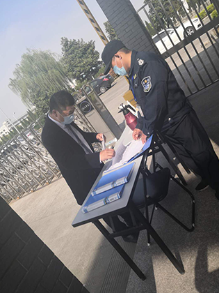 保安經(jīng)理到項目上檢查工作被保安員攔下量測體溫登記